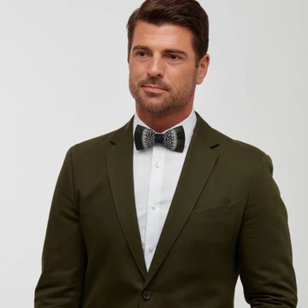 - Feathers for bow ties are hand-selected, giving each finished piece unique coloring.